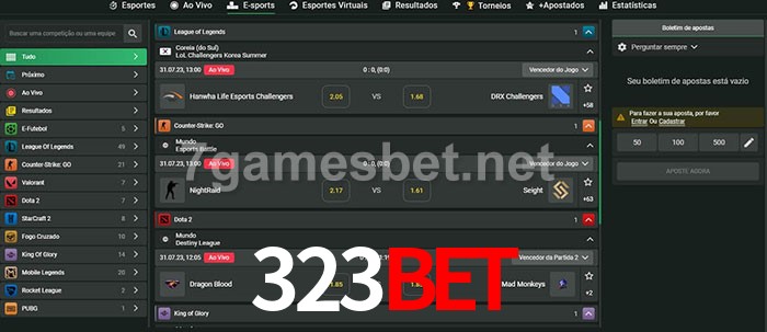 O 323Bet oferece uma grande seleção de opções de apostas em e-sports com probabilidades competitivas